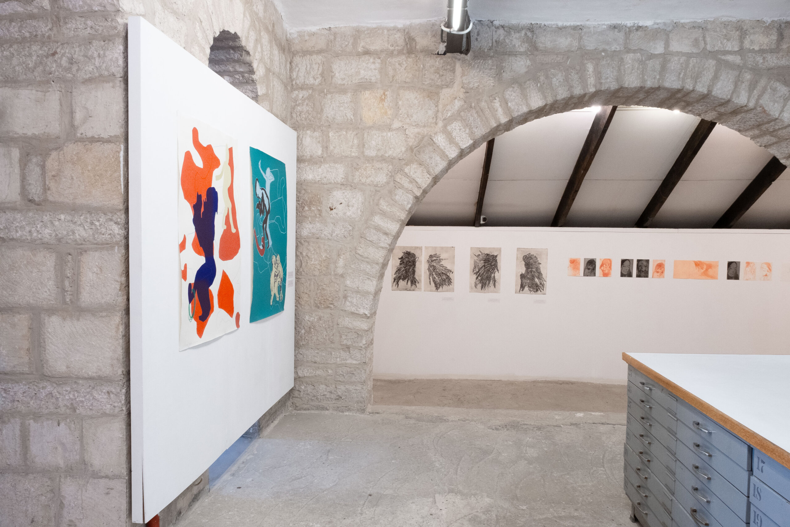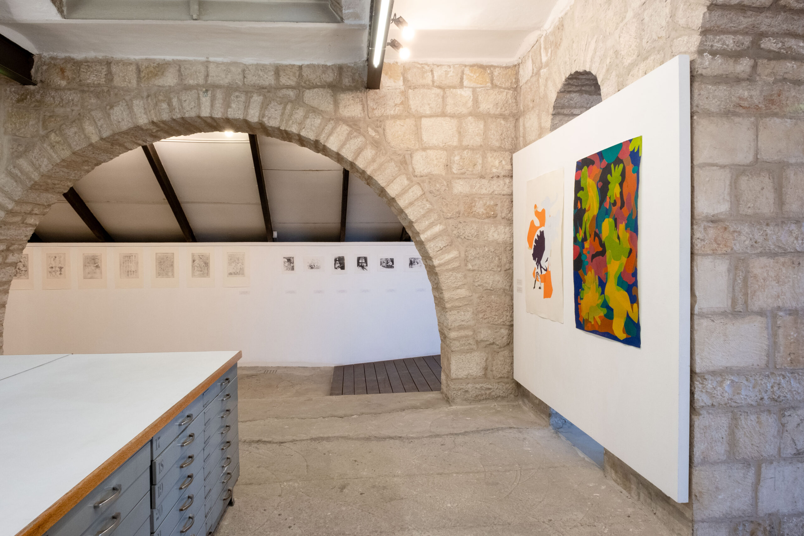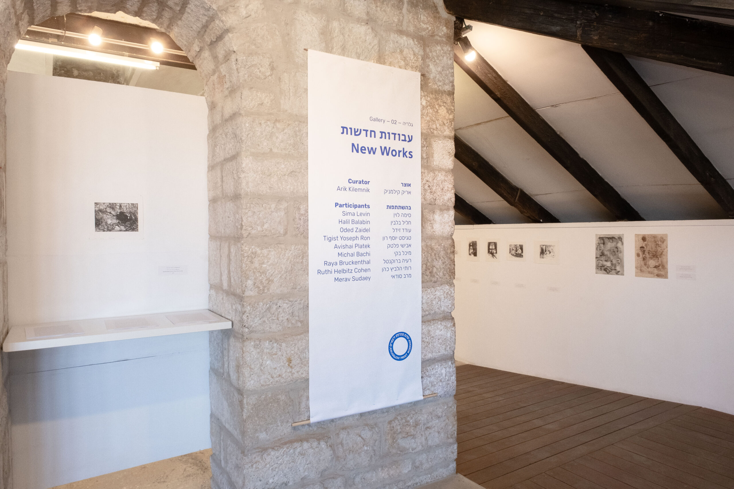 The exhibition New Works presents prints by nine artists who were invited to work at the Jerusalem Print Workshop in recent years. It is part of the Workshop’s fiftieth anniversary celebrations. Ordinarily, the Workshop unveils new works every two years; however, the events of the past years – the COVID-19 pandemic and the ongoing war – delayed the presentation of the new prints, some of which were created even before the pandemic began. The artists are given the opportunity to work with all the classical printmaking techniques: etching, lithography, screen printing, and woodcut – providing them with a variety of tools and rich modes of expression. Each print in the exhibition bears the artist’s personal signature, reflecting his or her unique journey and visual language. The breadth of technical and artistic choices highlights the diversity and vitality of contemporary graphic art.