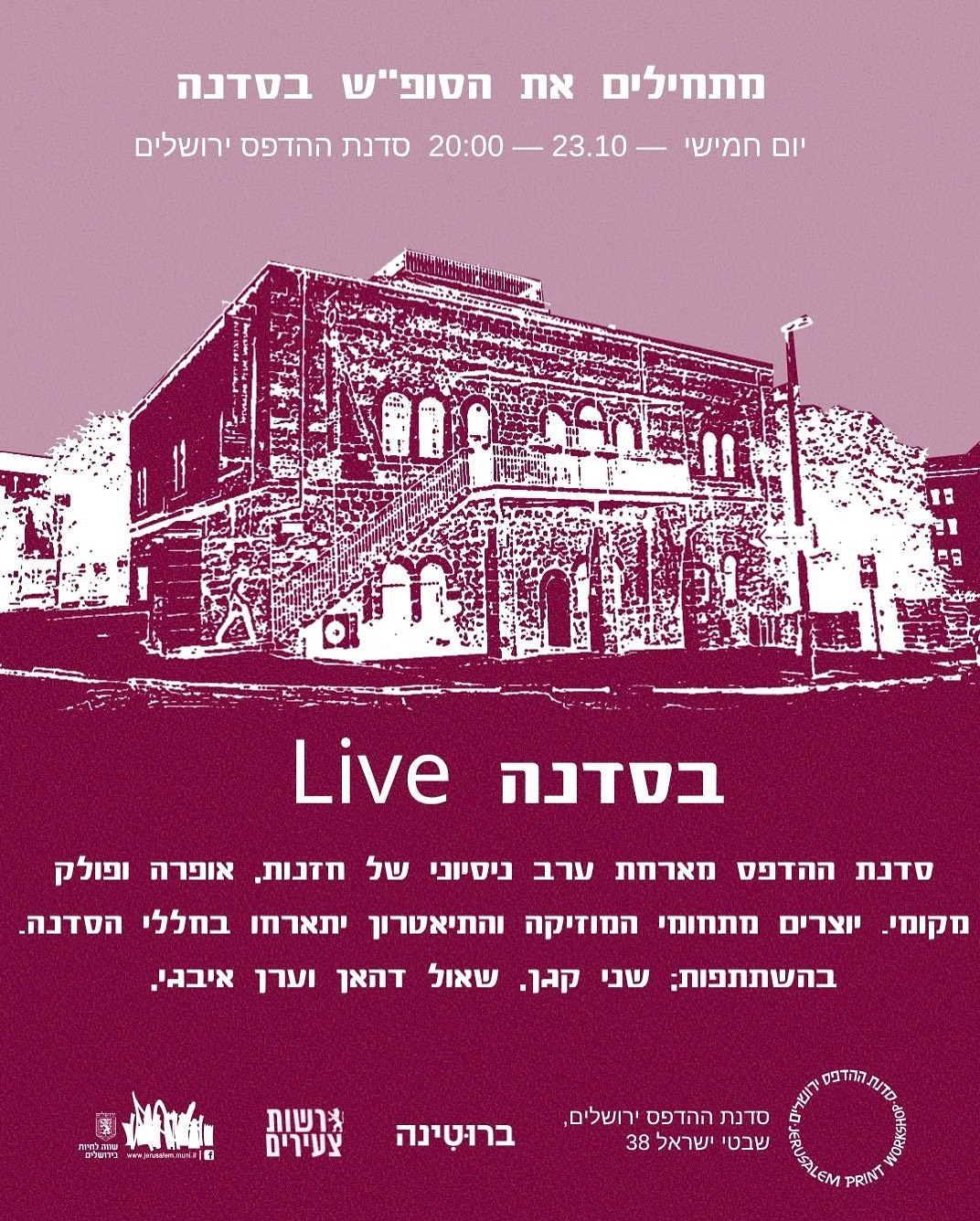 סדנת ההדפס מאחרת ערב ניסיוני של חזנות, אופרה ופולק מקומי בין בכבשי הסדנה;
