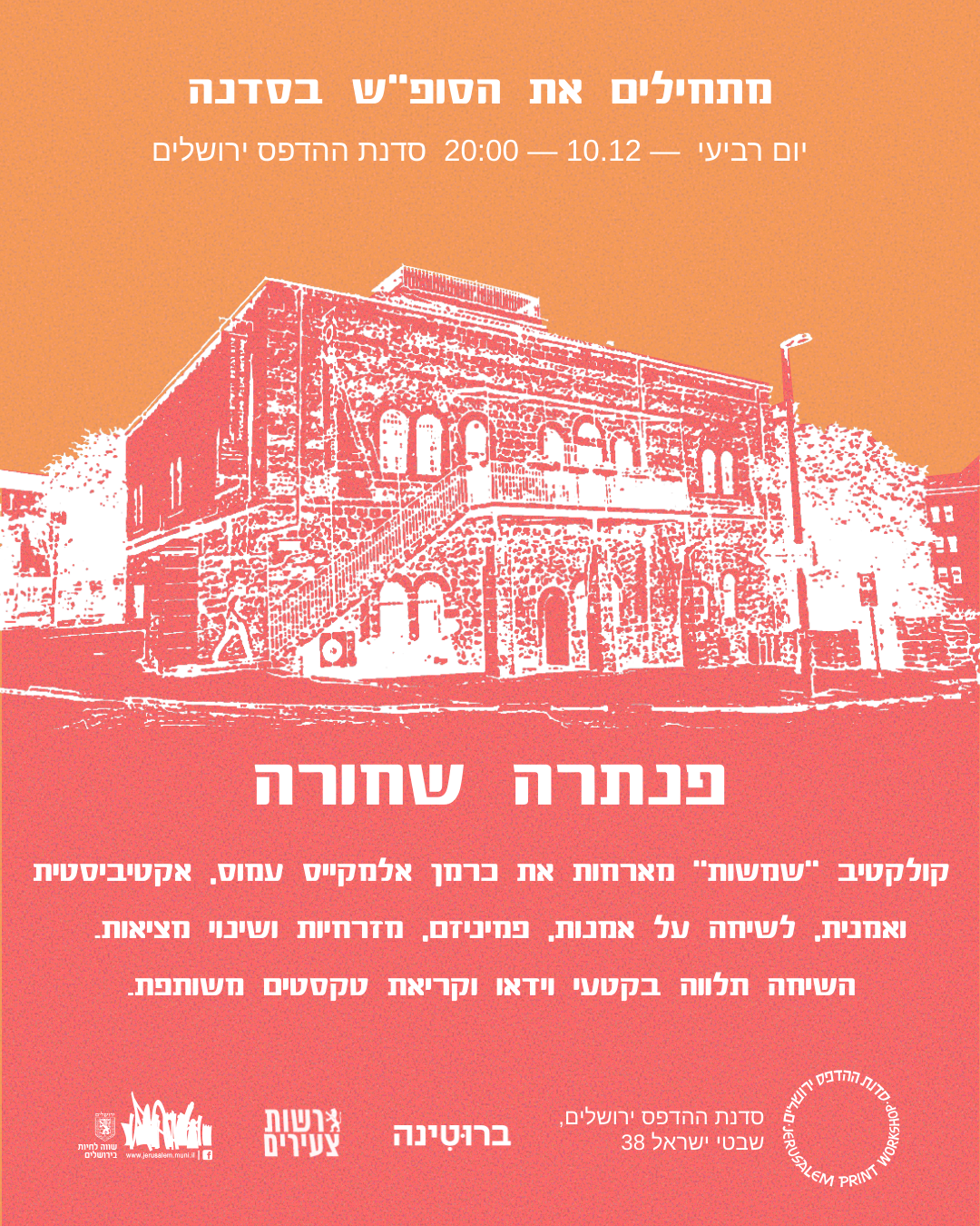 קולקטיב ״שמשות״ מארחות את כרמן אלמקייס עמוס, אקטיביסטית ואמנית, לשיחה על אמנות, פמיניזם, מזרחיות ושינוי מציאות. השיחה תלווה בקטעי וידאו וקריאת טקסטים משותפת.