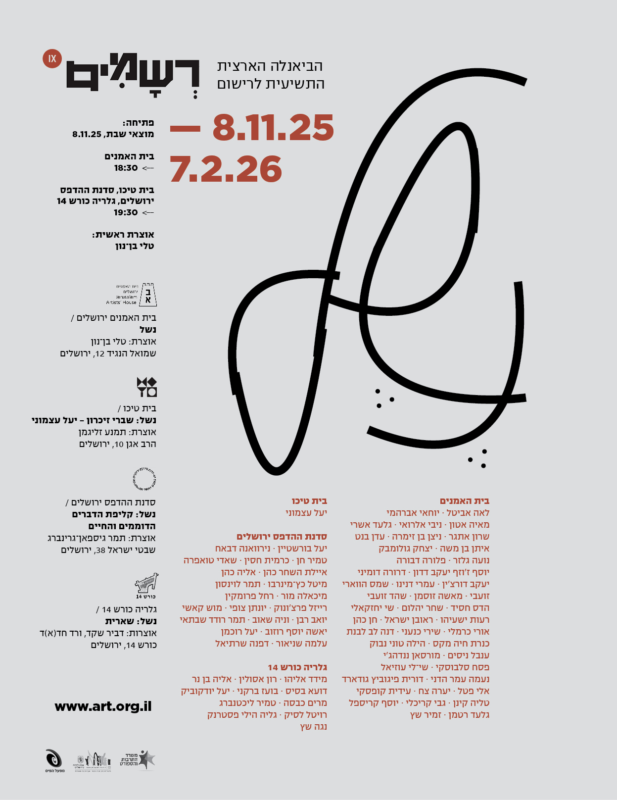 21 אמניות ואמנים מציגים עבודות בטכניקות מגוונות, העוסקות בנשל והתנשלות במישרין או בעקיפין.